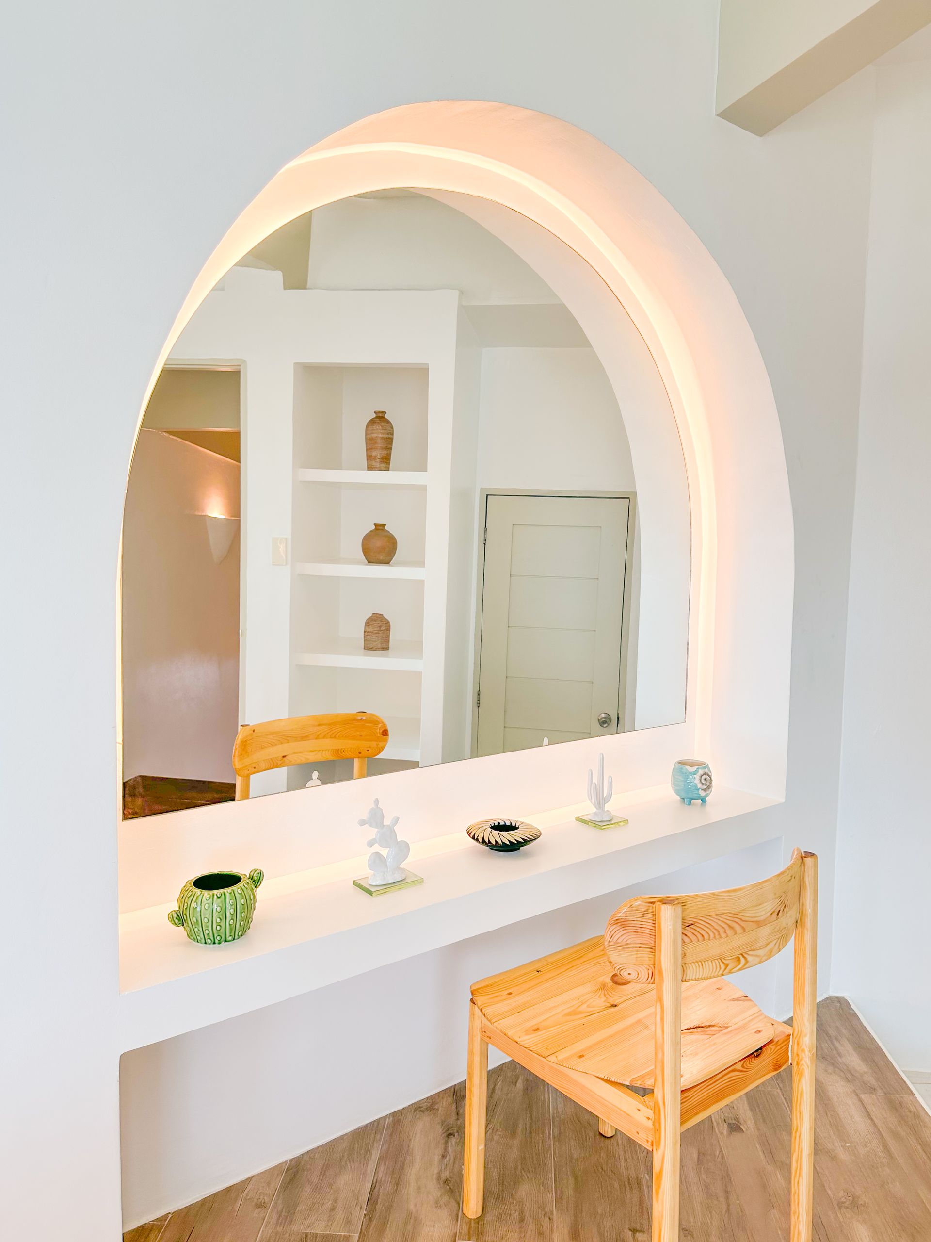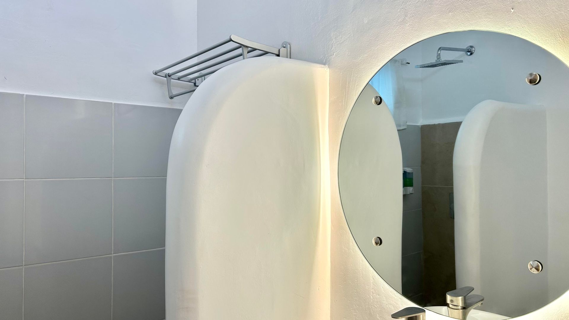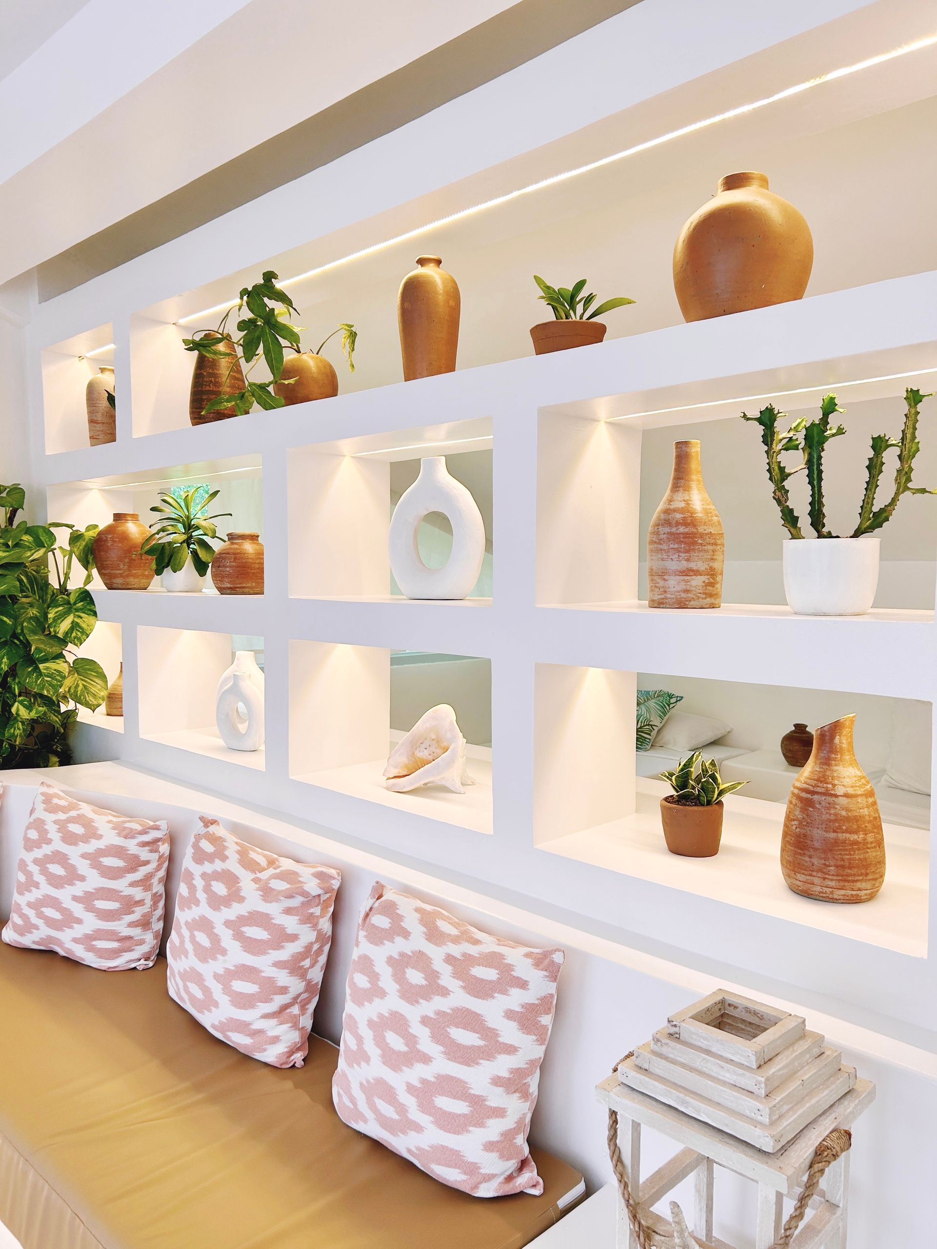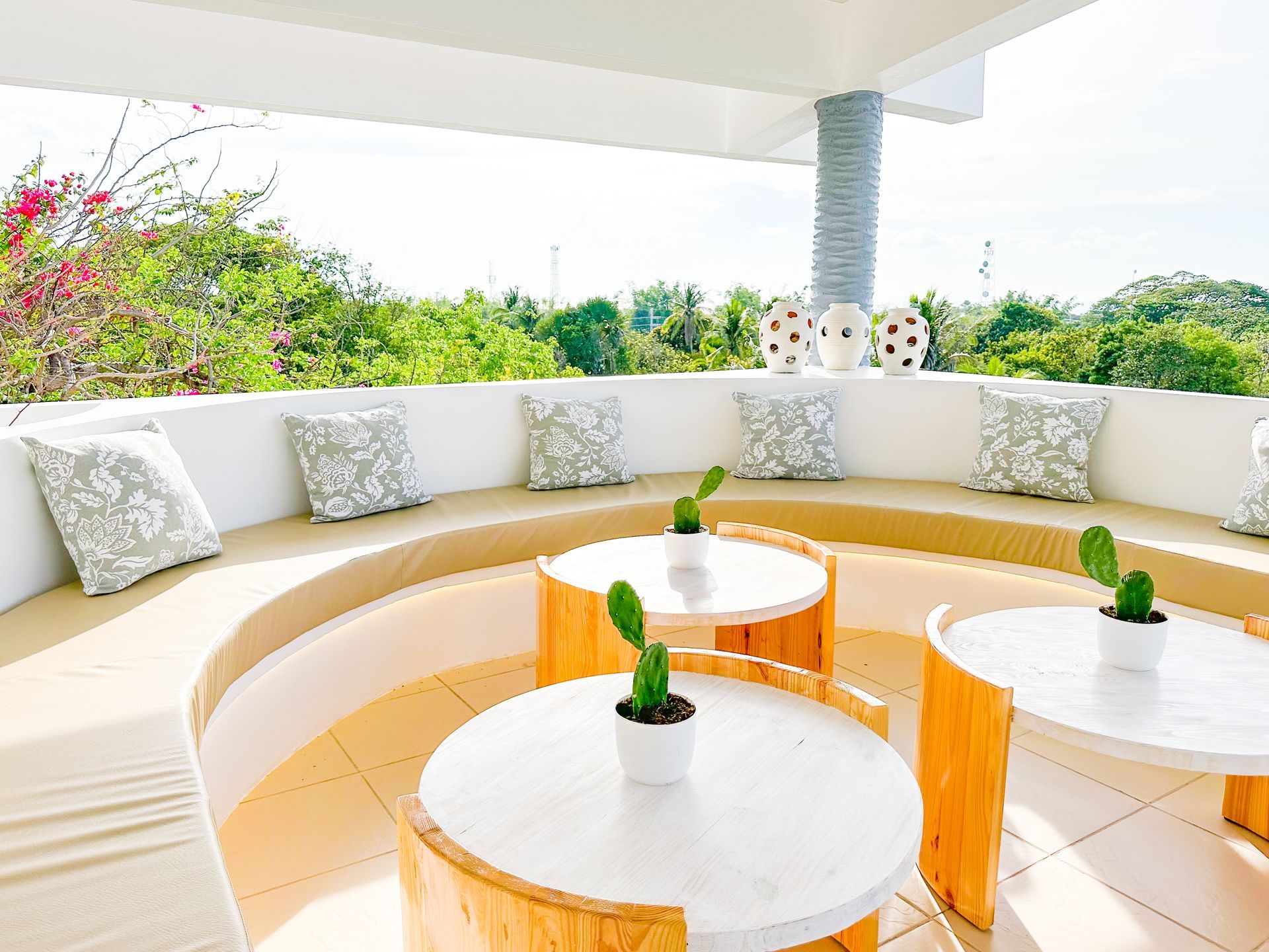 We invite you to let your troubles melt away in this quaint, Santorini inspired Villa. Cook your favorite meals in the fully equipped kitchen, and enjoy them in the cozy Moroccan Salon living room area. Or why not make use of the grill on the spacious, private balcony, with its breathtaking view over the common infinity pool and the ocean.