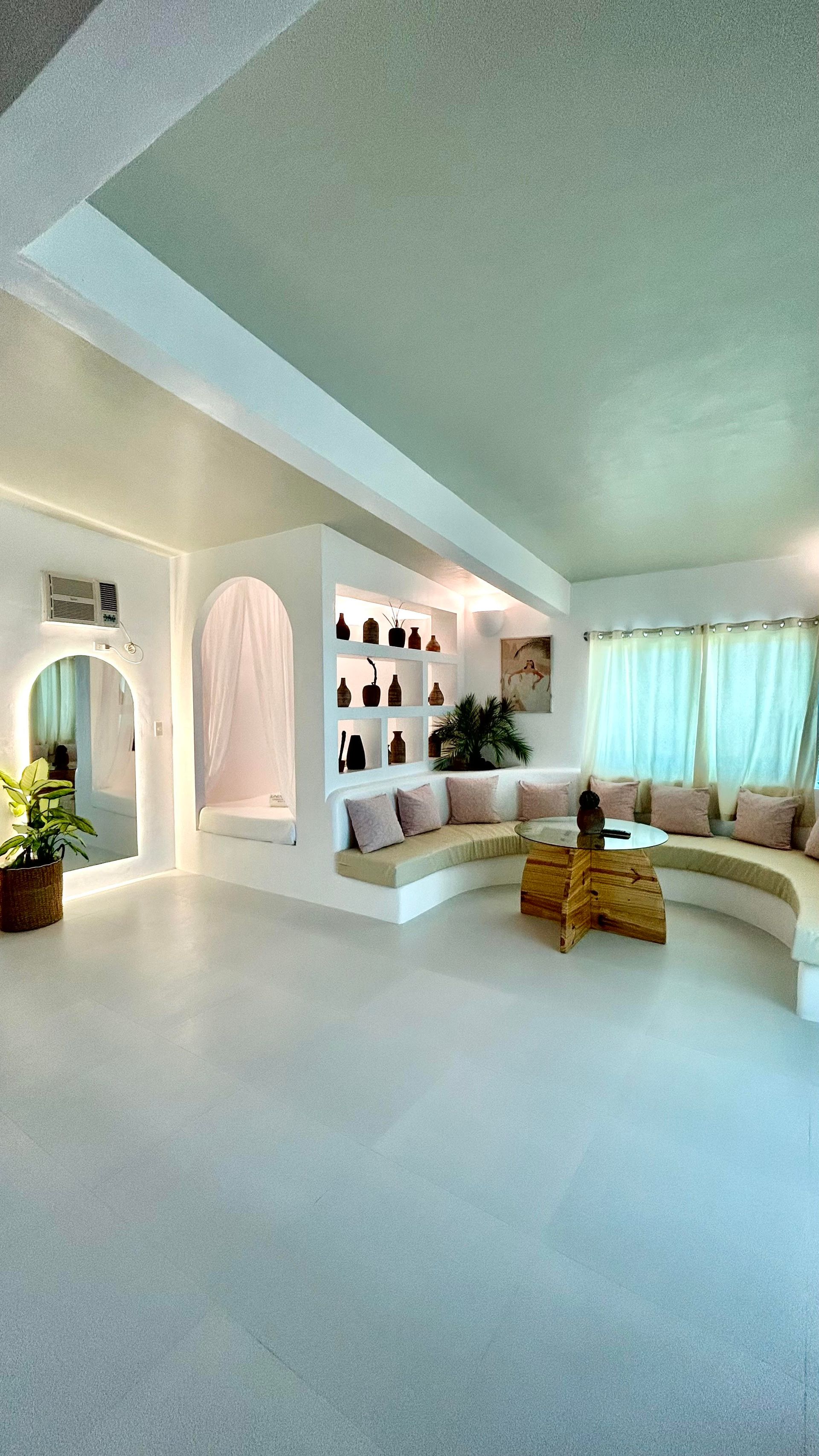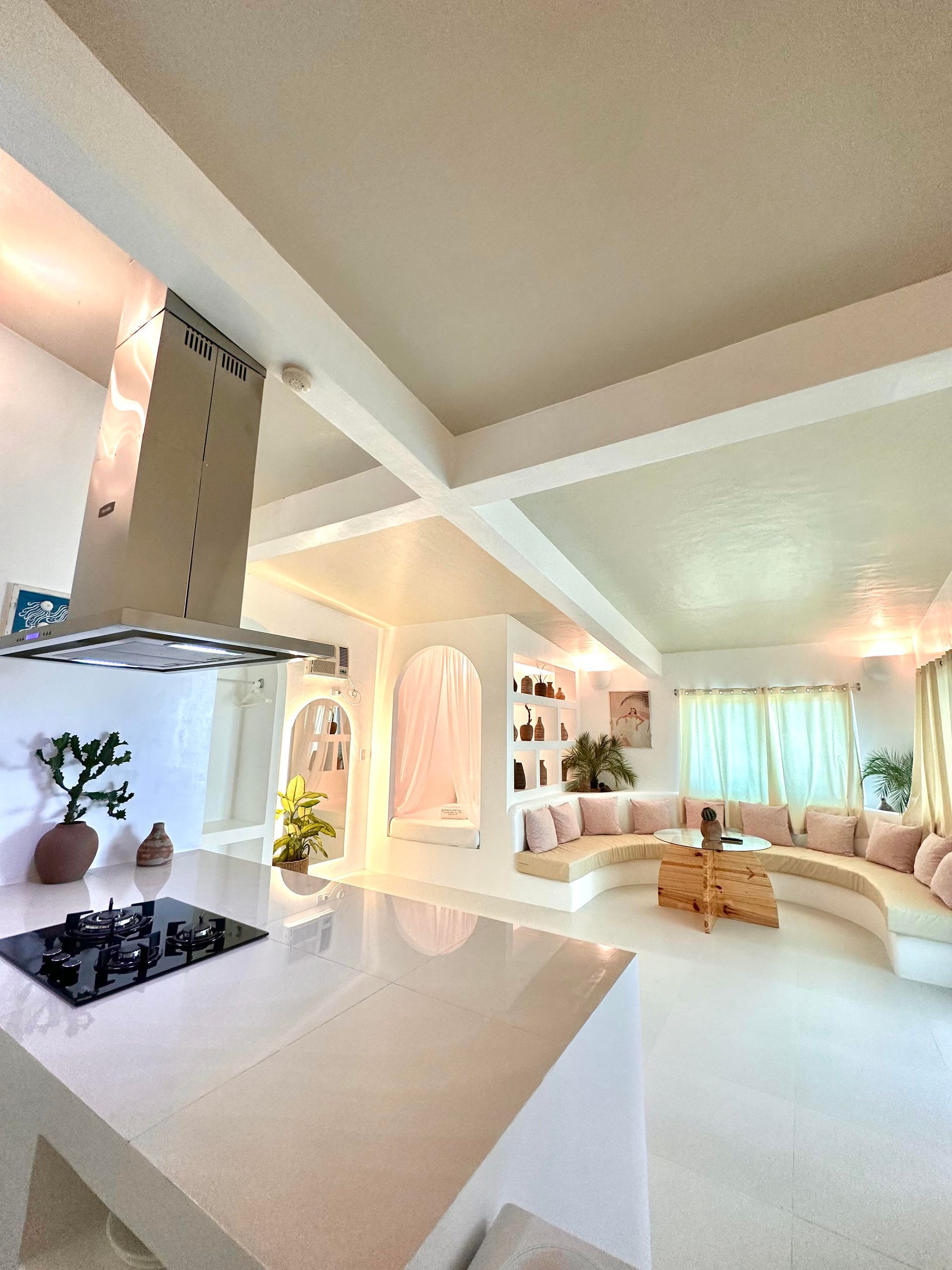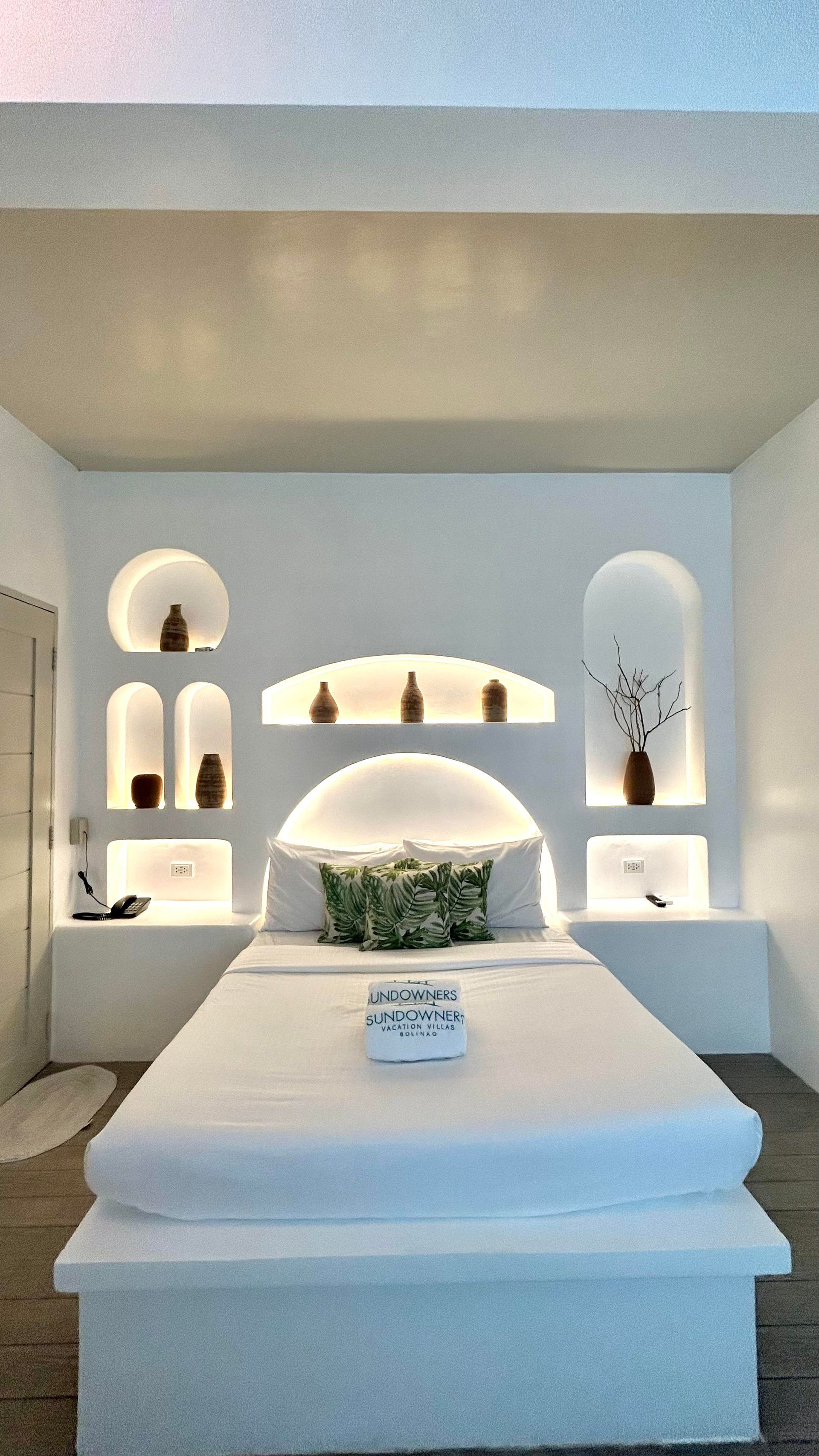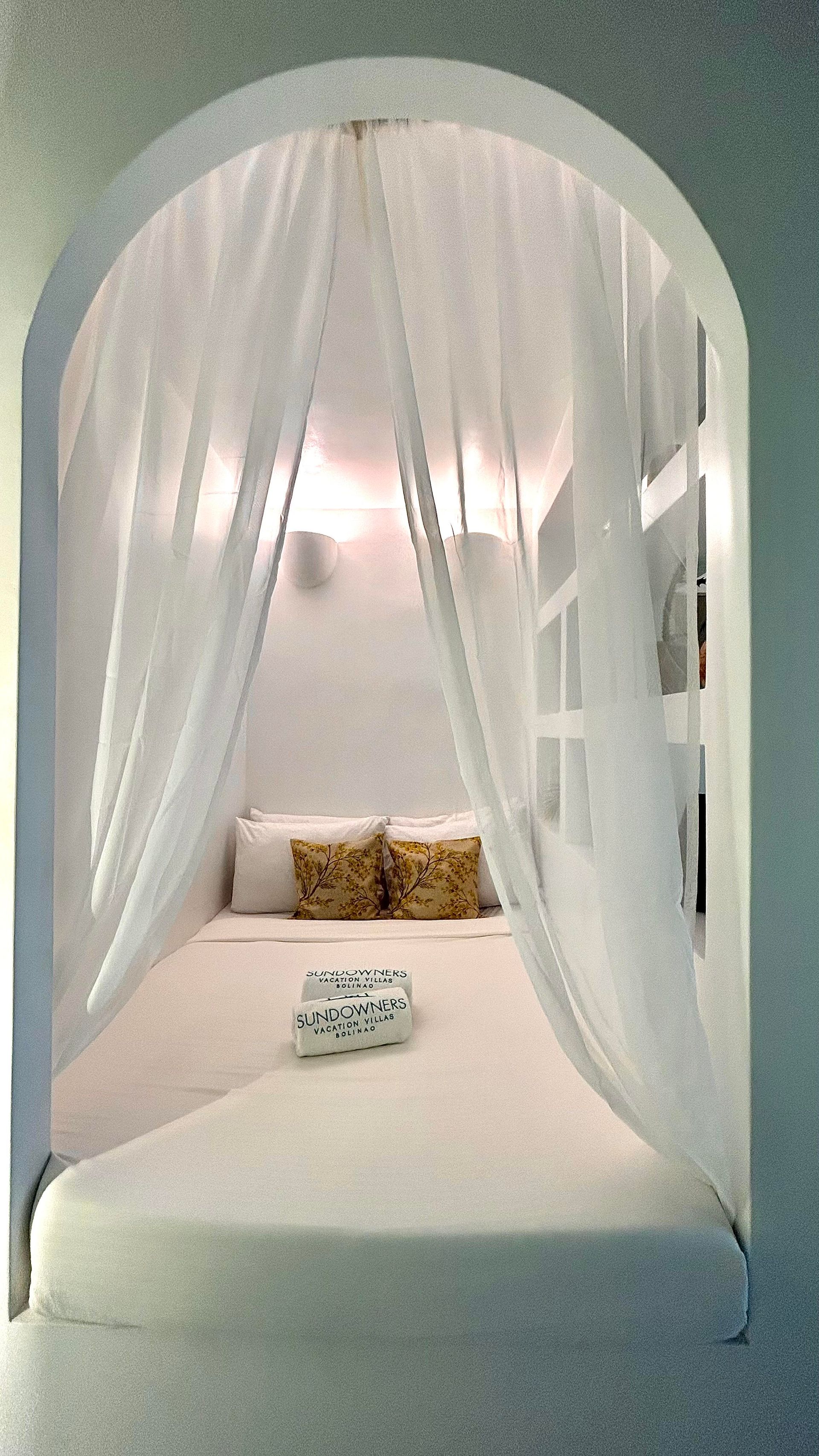 Enjoy a stunning, 360-degree view over the bay and Bolinao town from this Villa’s very own roof deck. We invite you to lounge in the plunge pool or one of the many outdoor spaces while taking in all the magnificent sights. This Santorini inspired Villa, really is the perfect place for a bigger group to get way from the hustle and bustle of city life and enjoy a relaxing tropical retreat.