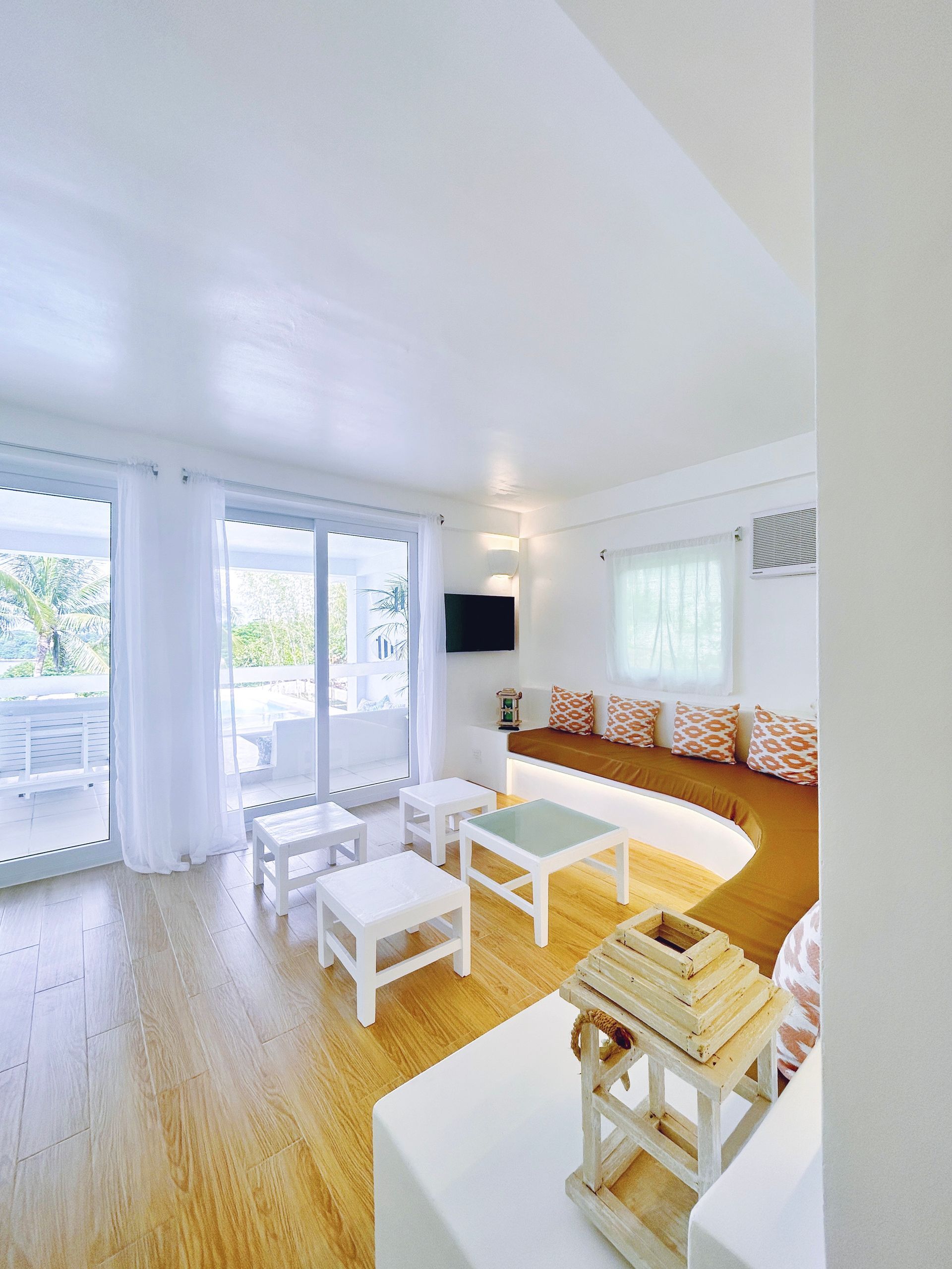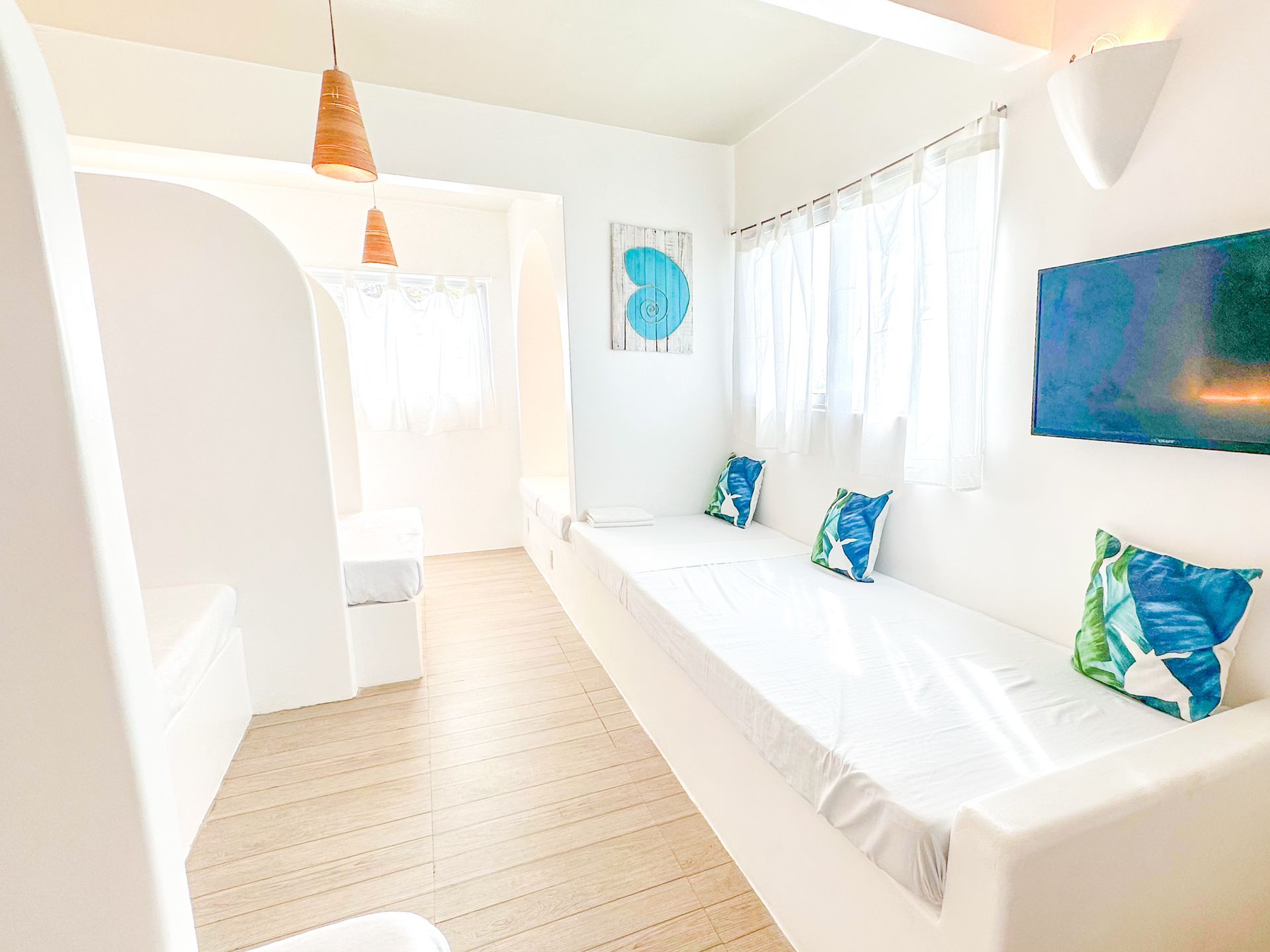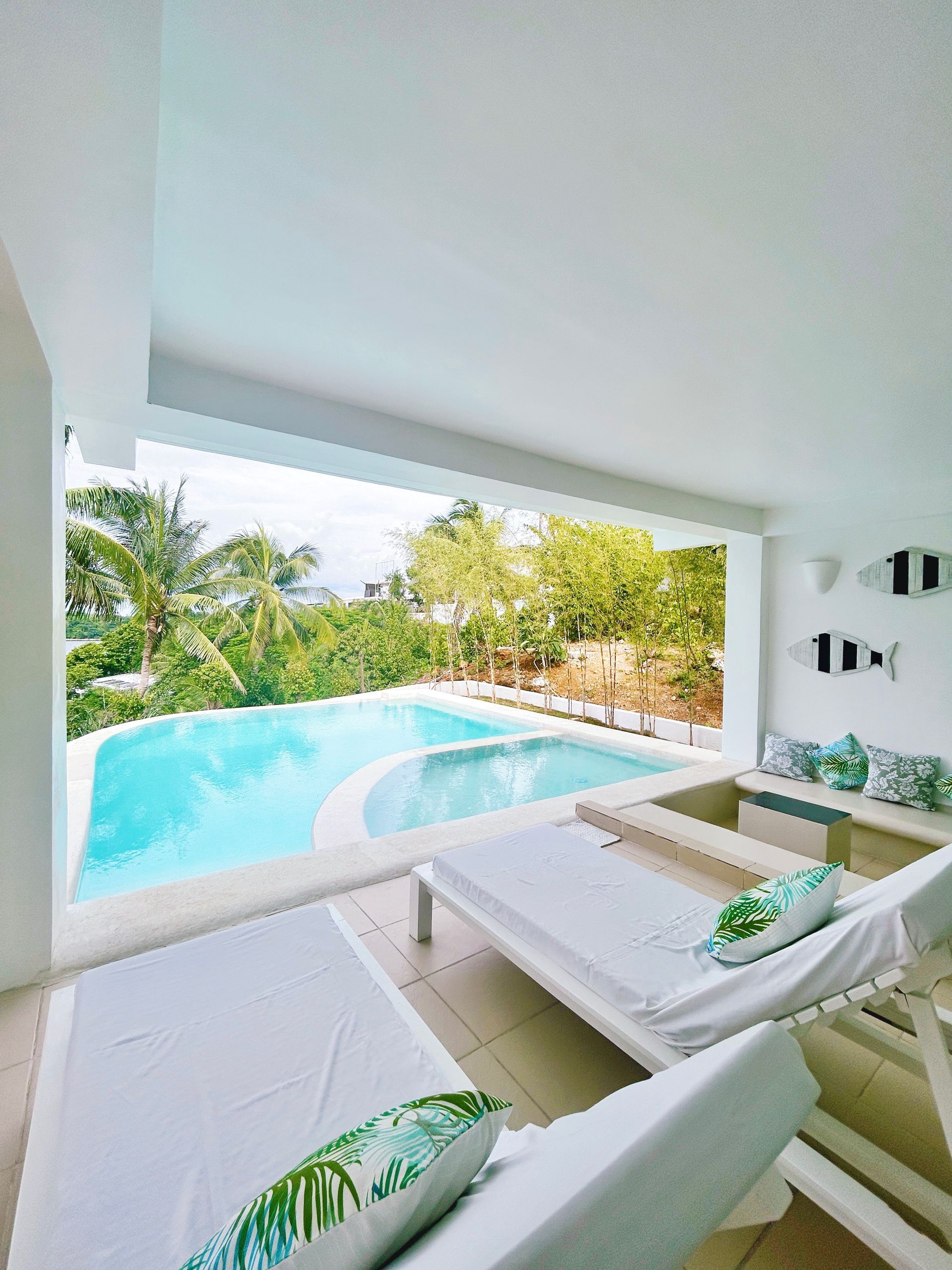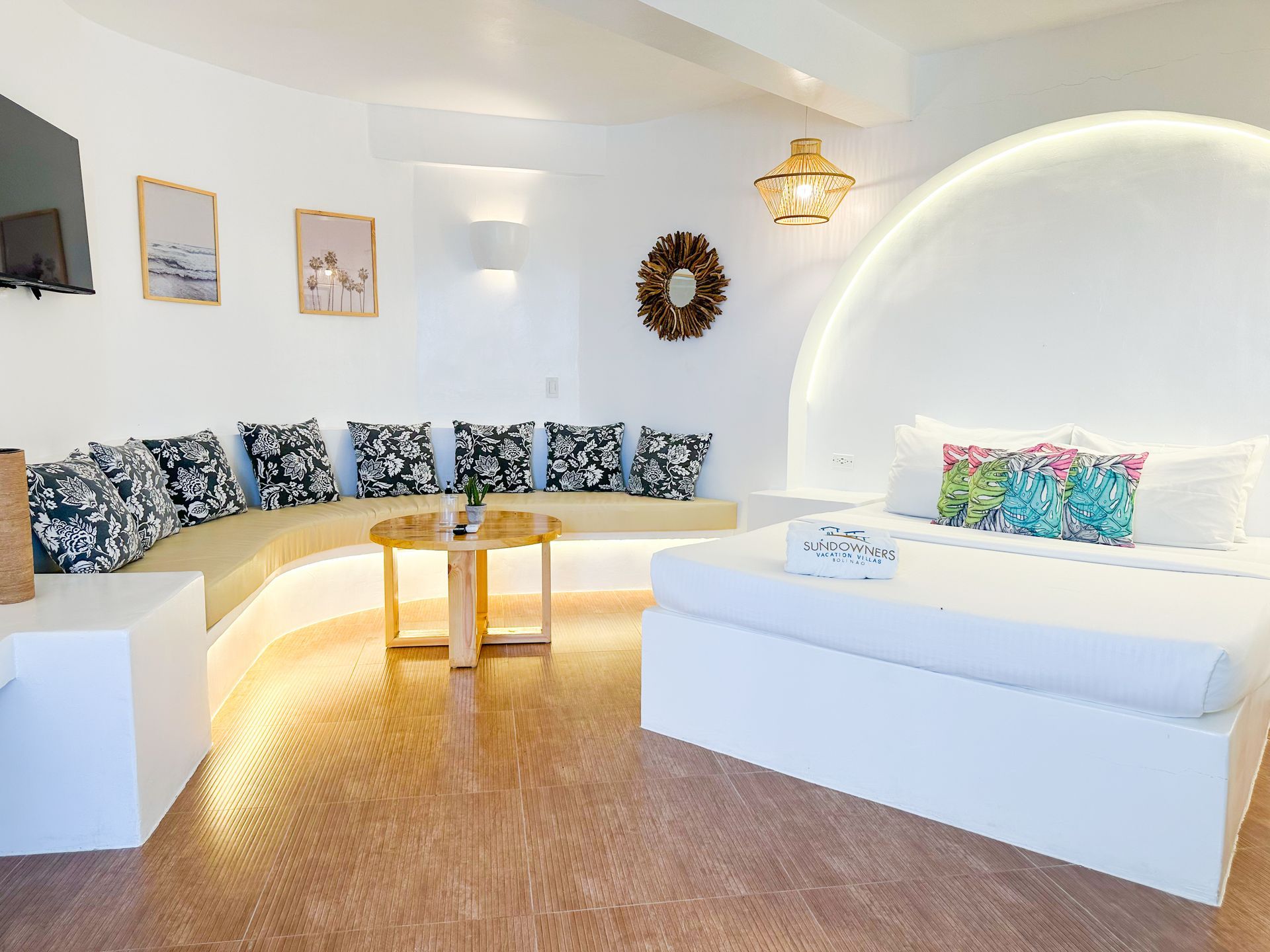 Enjoy a stunning, 360-degree view over the bay and Bolinao town from this Villa’s very own roof deck. We invite you to lounge in the plunge pool or one of the many outdoor spaces while taking in all the magnificent sights. This Santorini inspired Villa, really is the perfect place for a bigger group to get way from the hustle and bustle of city life and enjoy a relaxing tropical retreat.