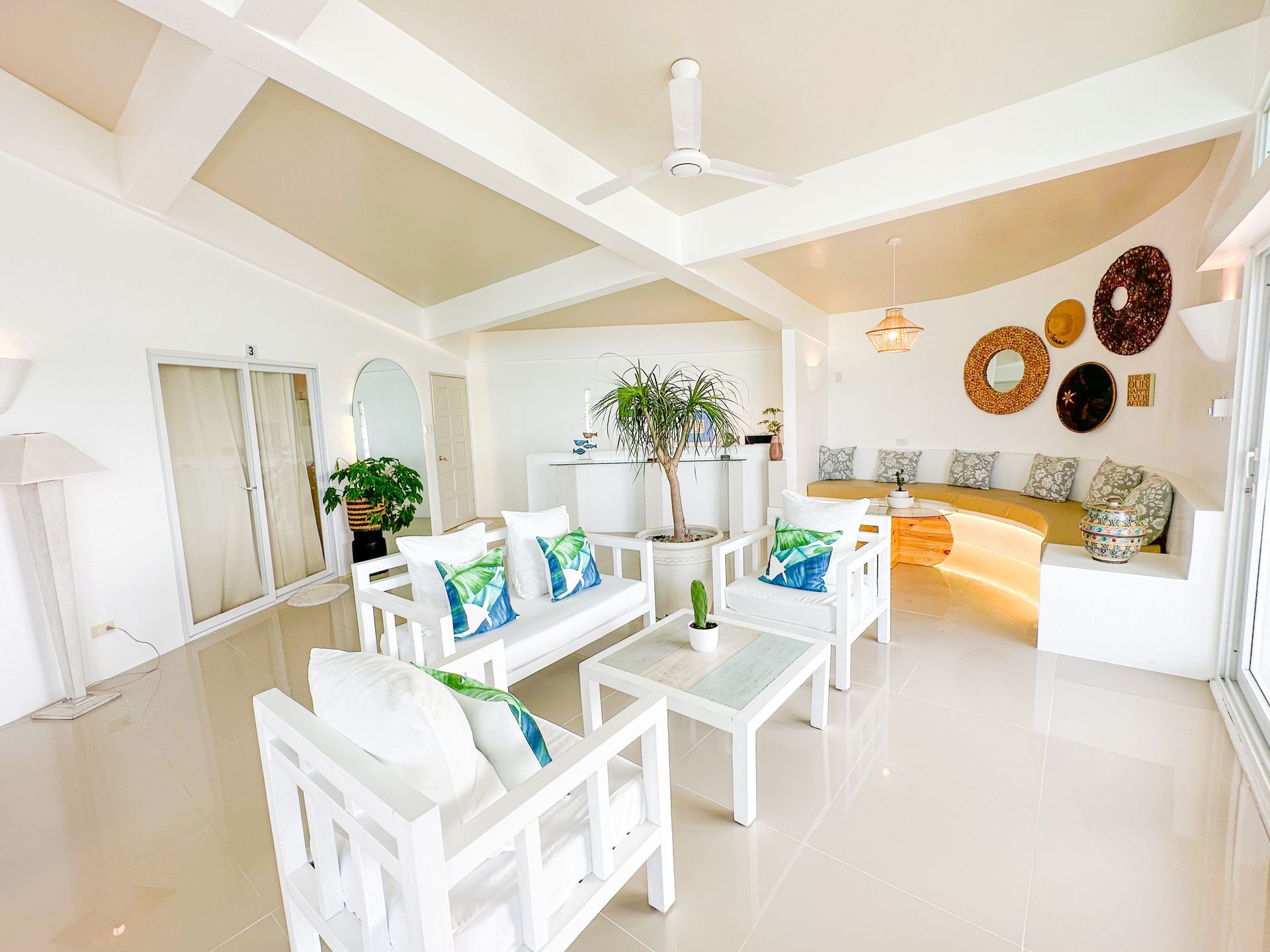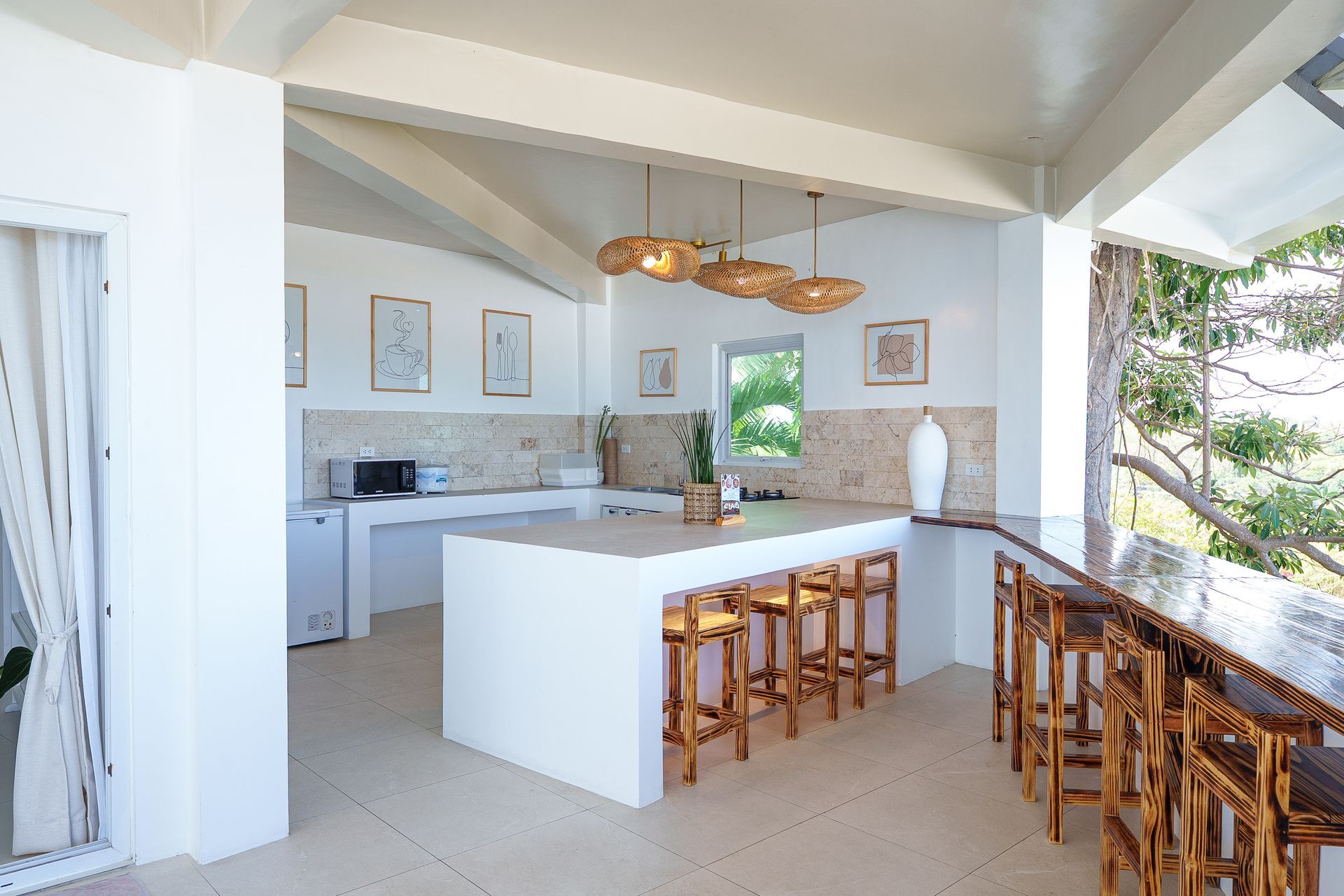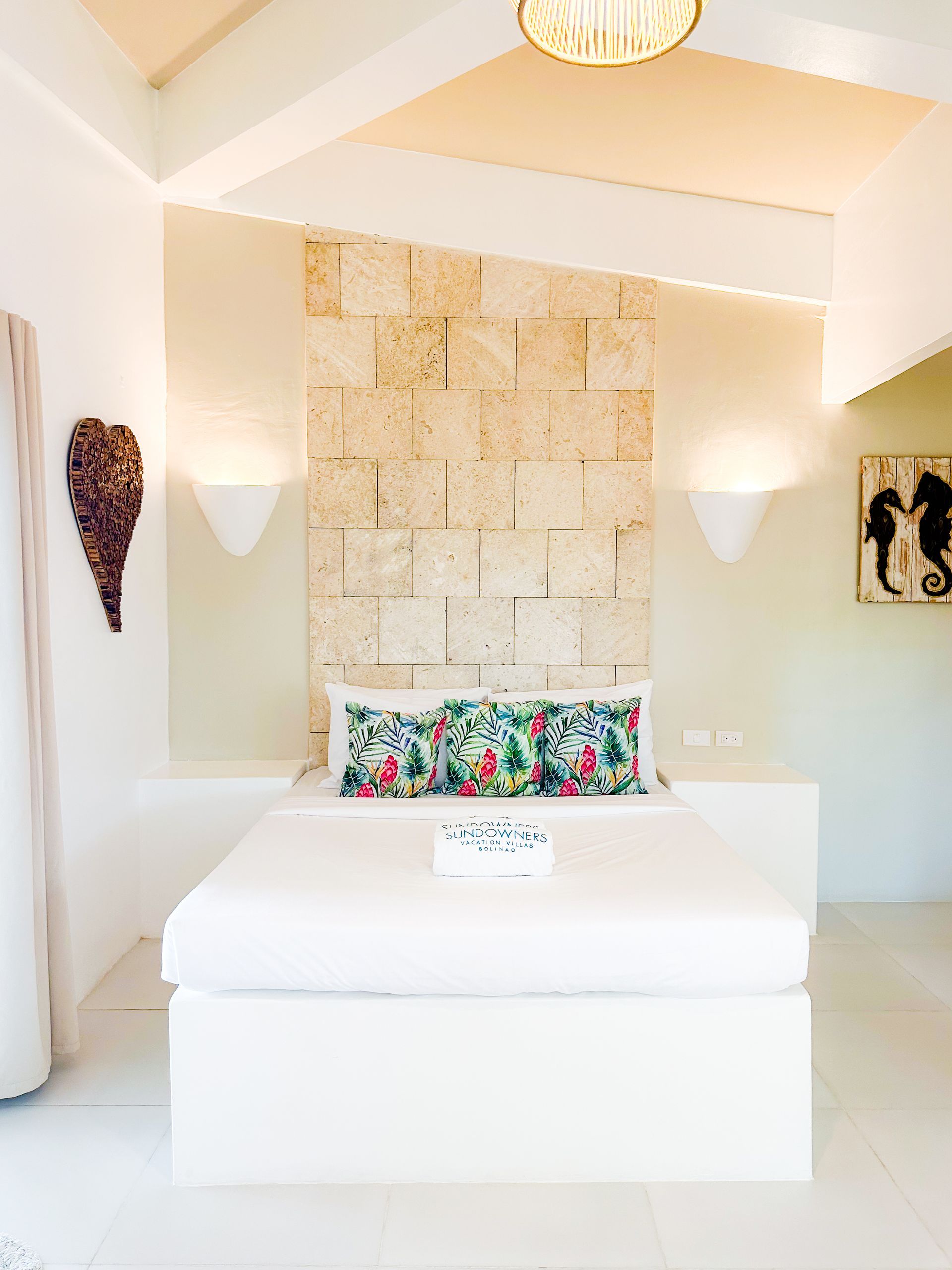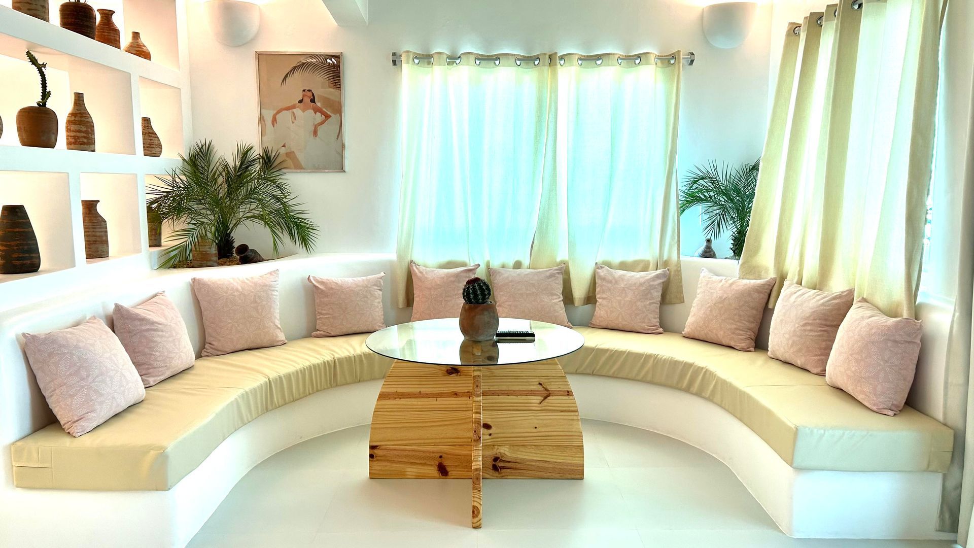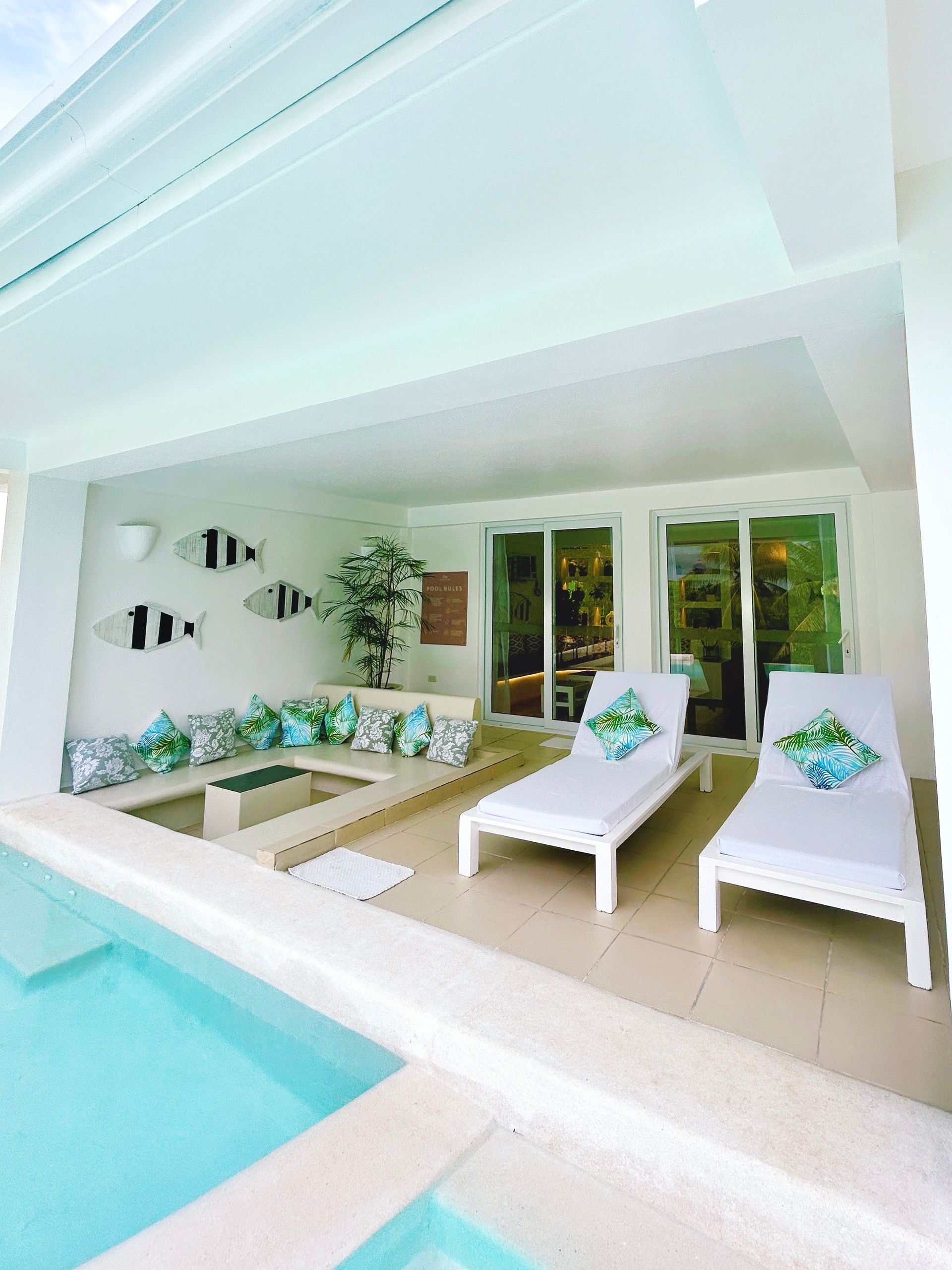 Enjoy a stunning, 360-degree view over the bay and Bolinao town from this Villa’s very own roof deck. We invite you to lounge in the plunge pool or one of the many outdoor spaces while taking in all the magnificent sights. This Santorini inspired Villa, really is the perfect place for a bigger group to get way from the hustle and bustle of city life and enjoy a relaxing tropical retreat.