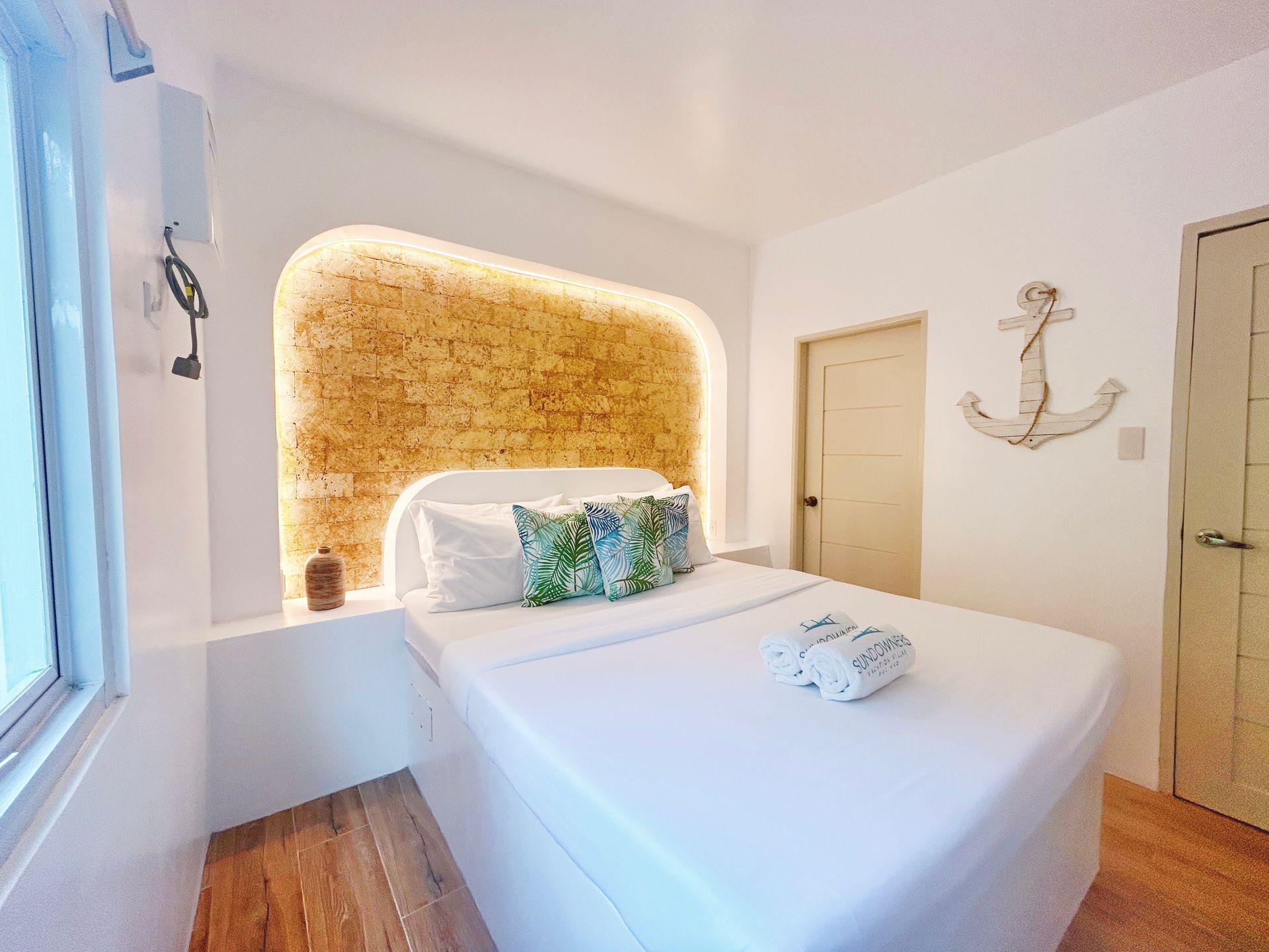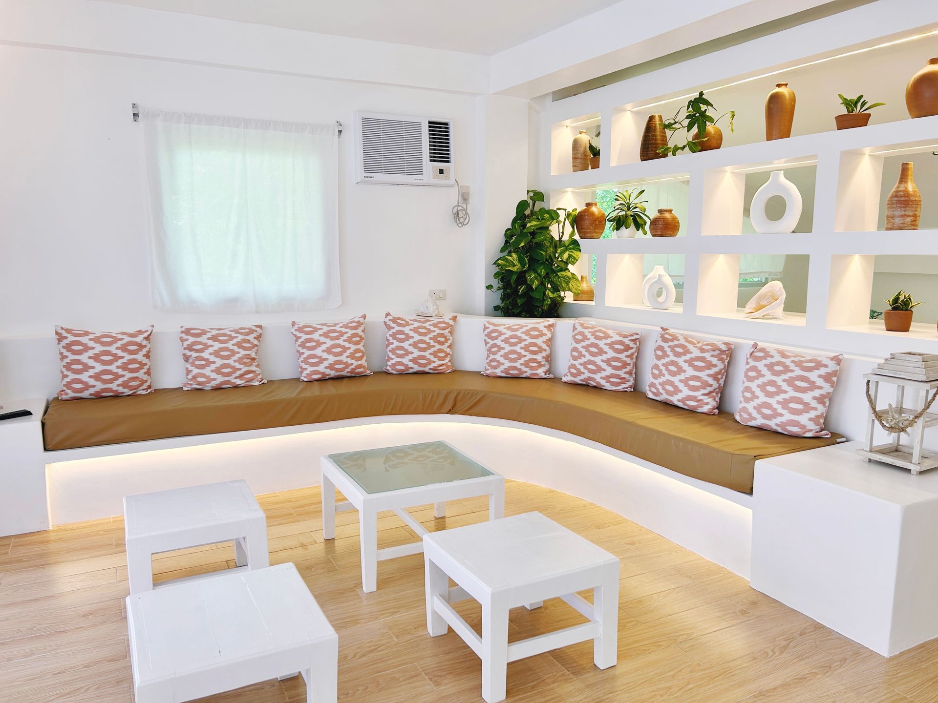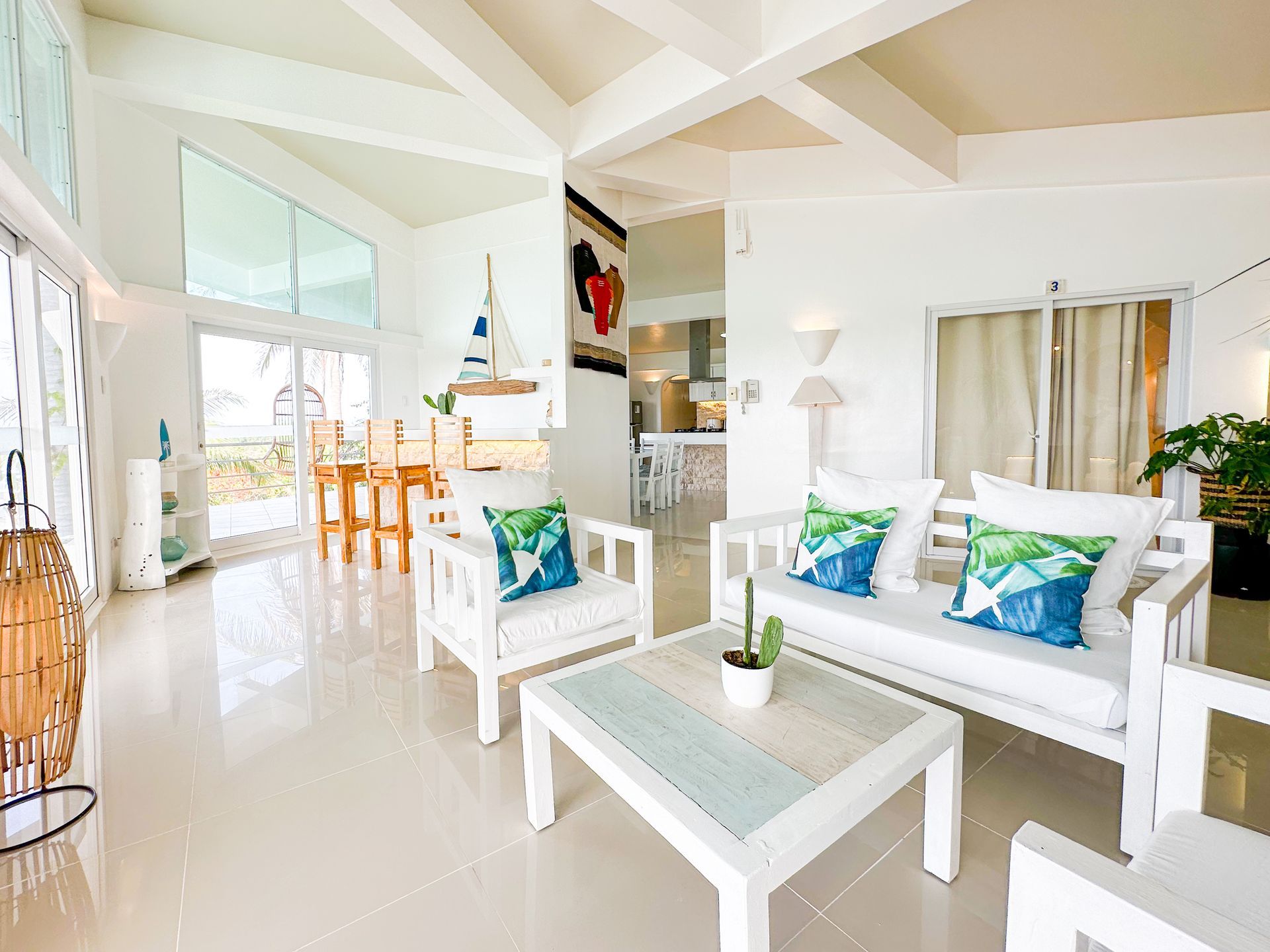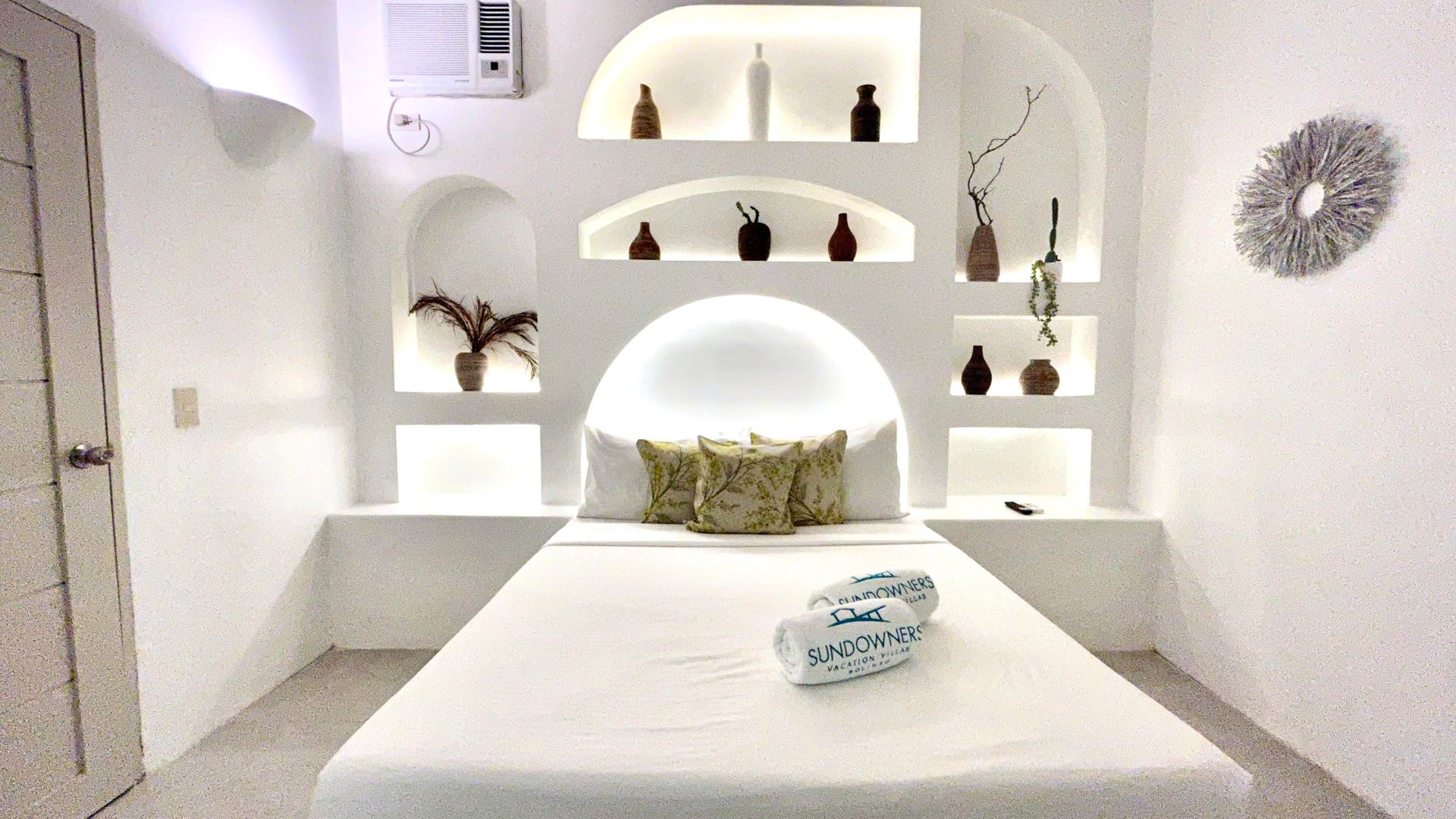 Enjoy a stunning, 360-degree view over the bay and Bolinao town from this Villa’s very own roof deck. We invite you to lounge in the plunge pool or one of the many outdoor spaces while taking in all the magnificent sights. This Santorini inspired Villa, really is the perfect place for a bigger group to get way from the hustle and bustle of city life and enjoy a relaxing tropical retreat.