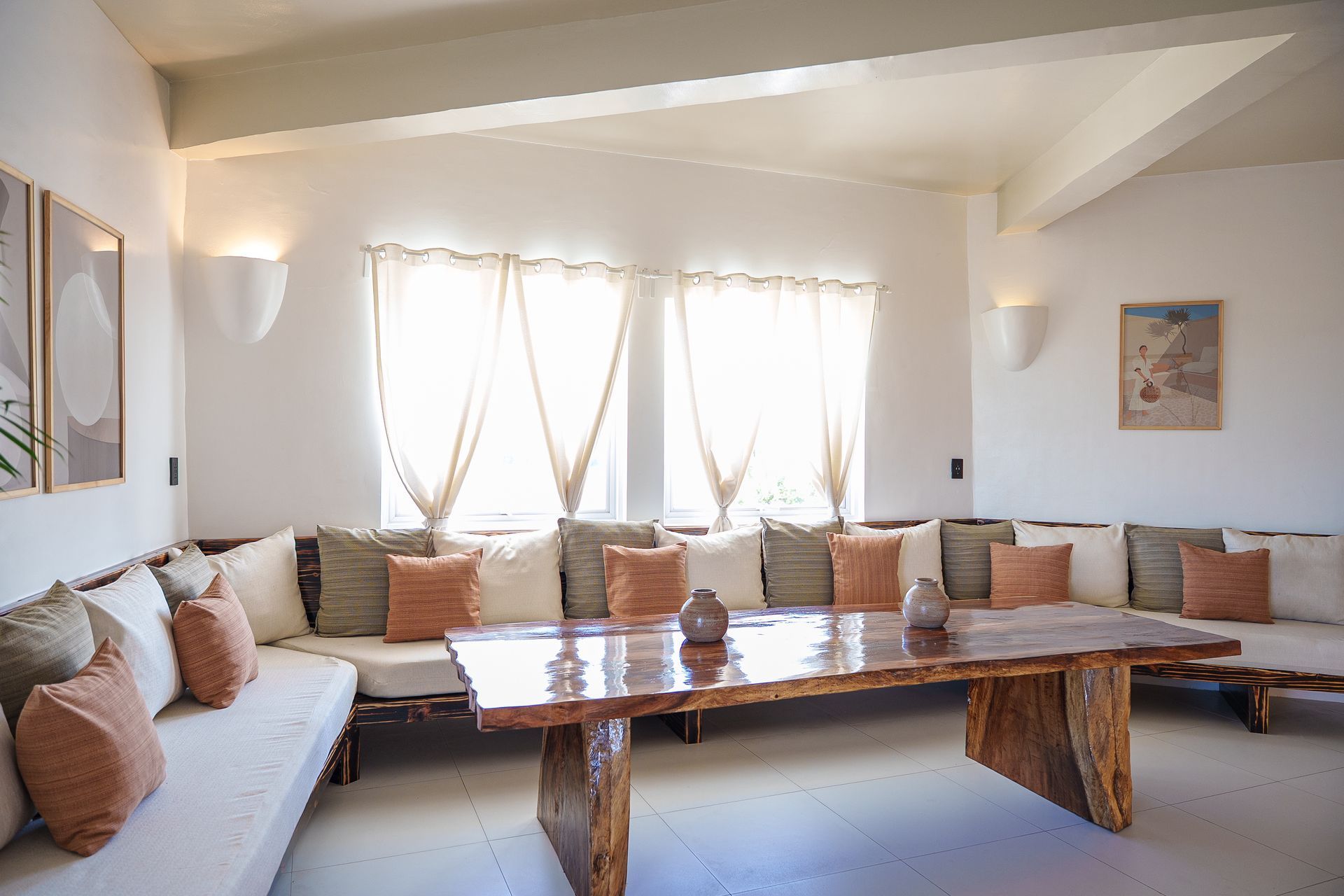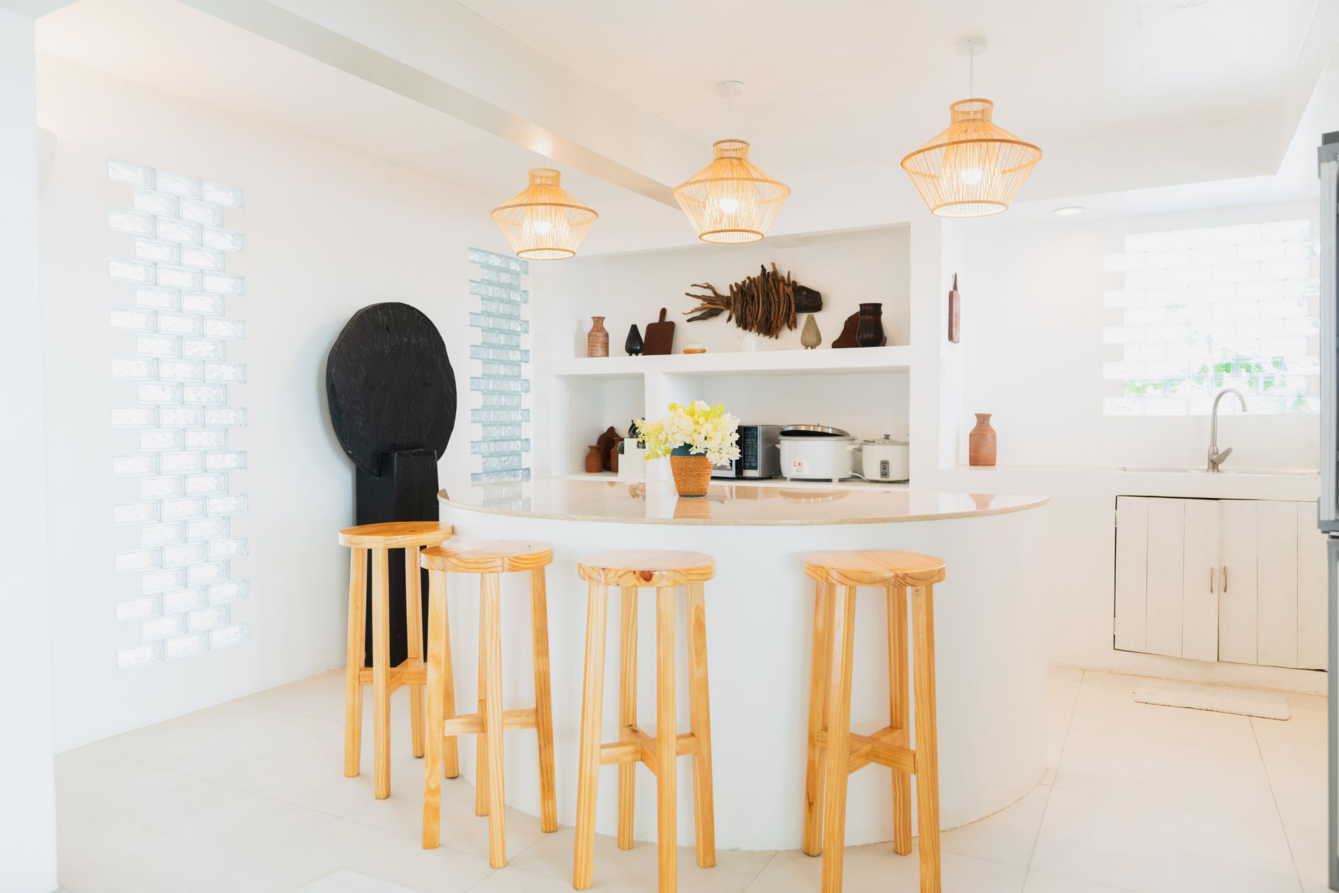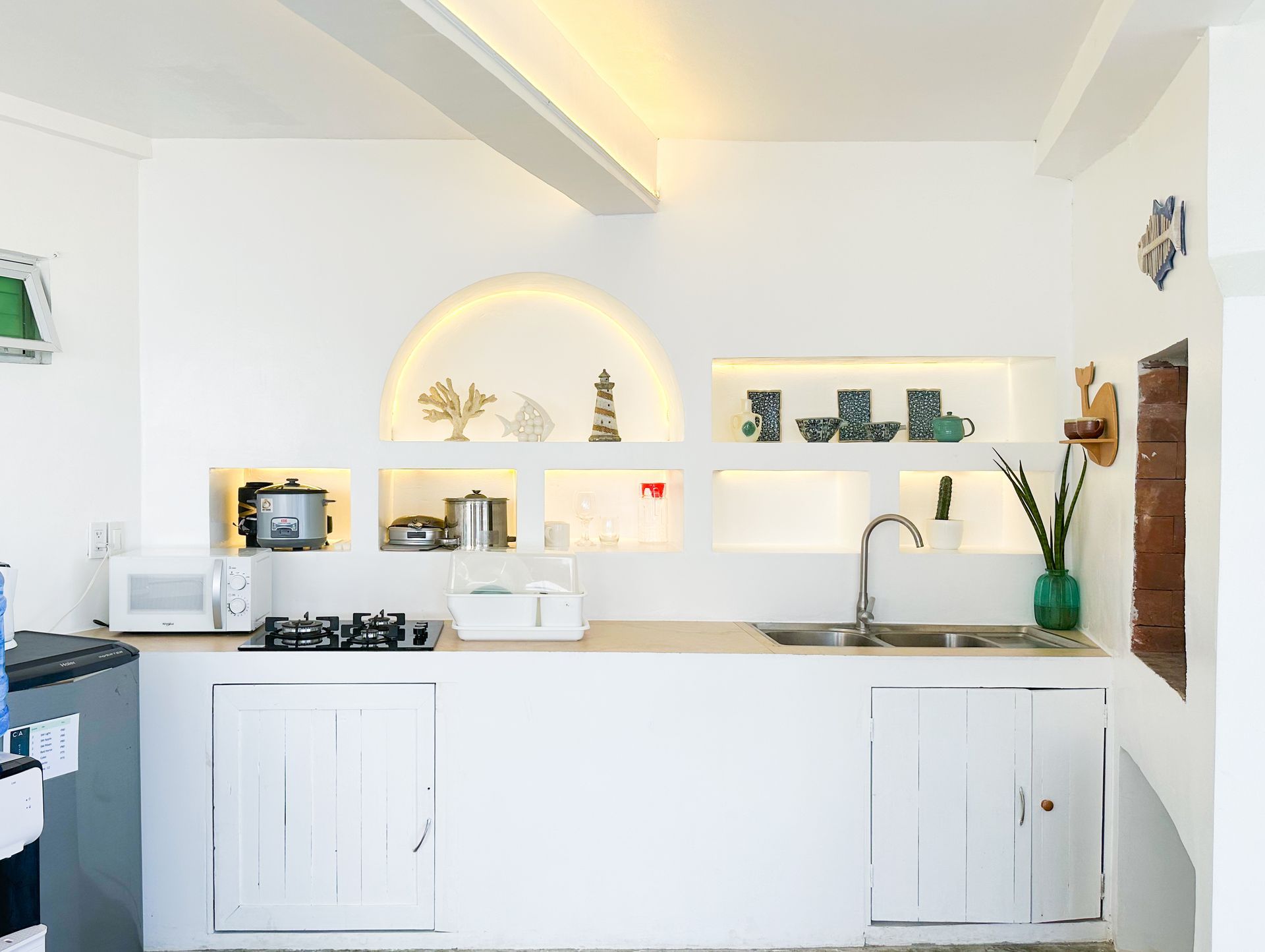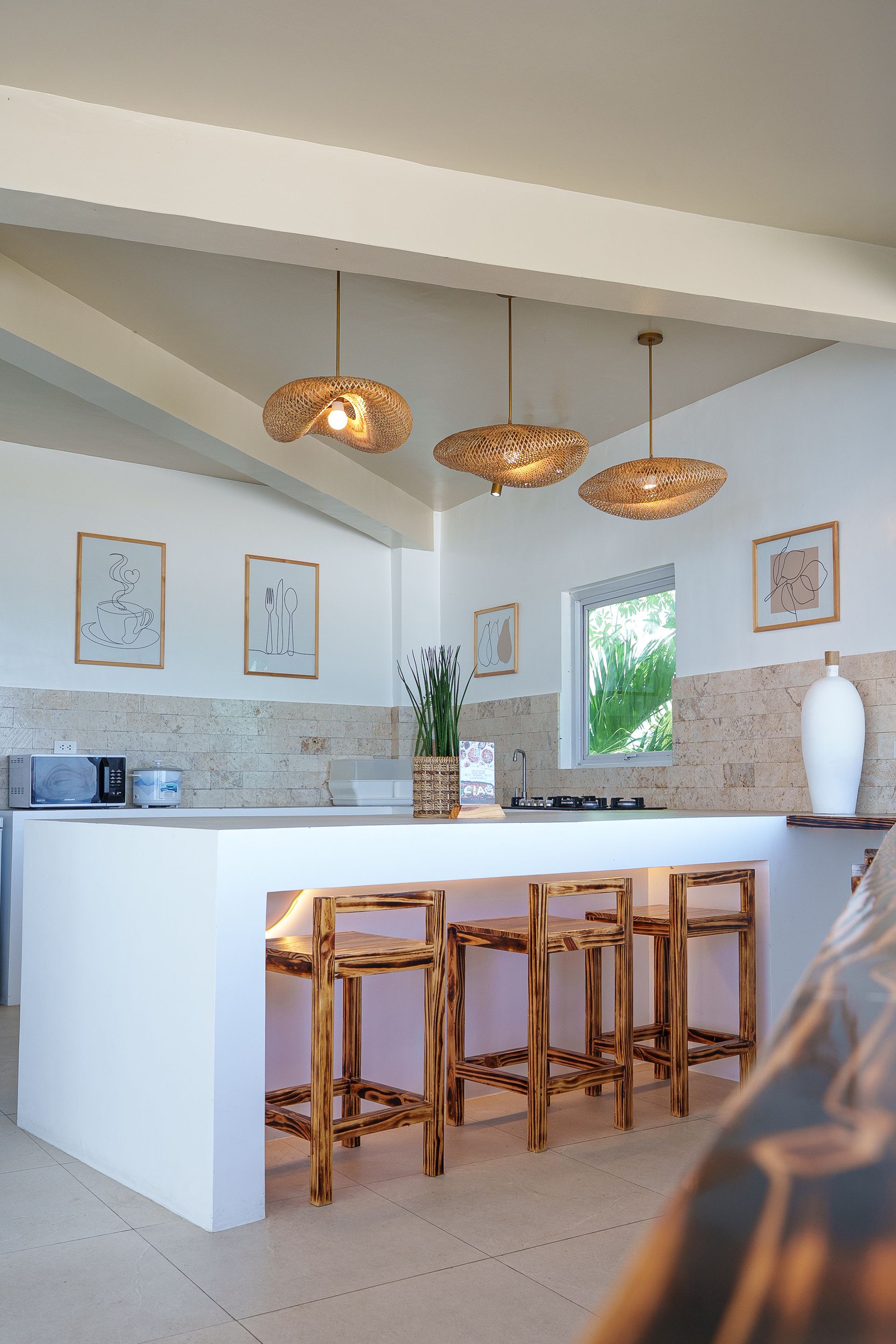 Enjoy a stunning, 360-degree view over the bay and Bolinao town from this Villa’s very own roof deck. We invite you to lounge in the plunge pool or one of the many outdoor spaces while taking in all the magnificent sights. This Santorini inspired Villa, really is the perfect place for a bigger group to get way from the hustle and bustle of city life and enjoy a relaxing tropical retreat.