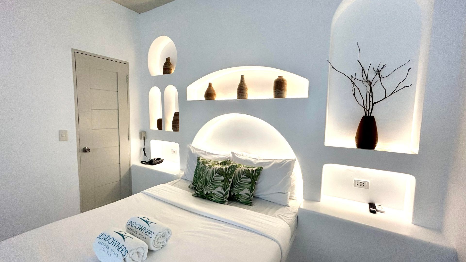 Enjoy some alone time with that special someone at our Kalachuchi Bedroom 2! This Santorini inspired villa is perfect for a romantic weekend away. Make use of the resorts public spaces, like the stunningly blue pools and restaurant overlooking the bay. Or why not enjoy some time alone on this Villa’s private balcony.