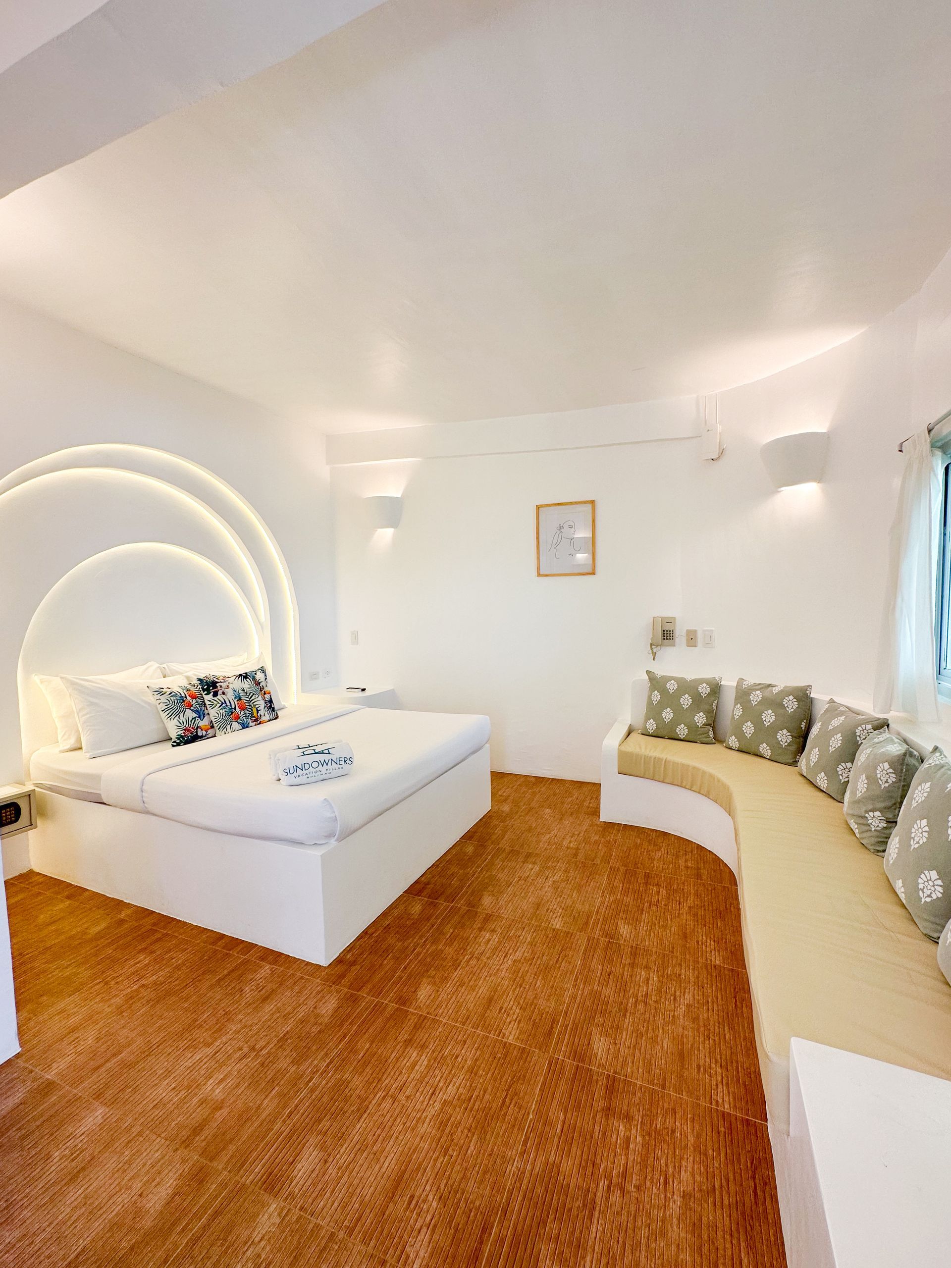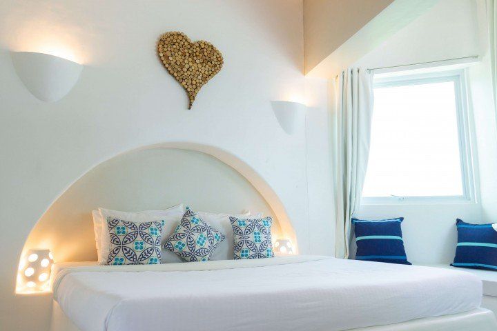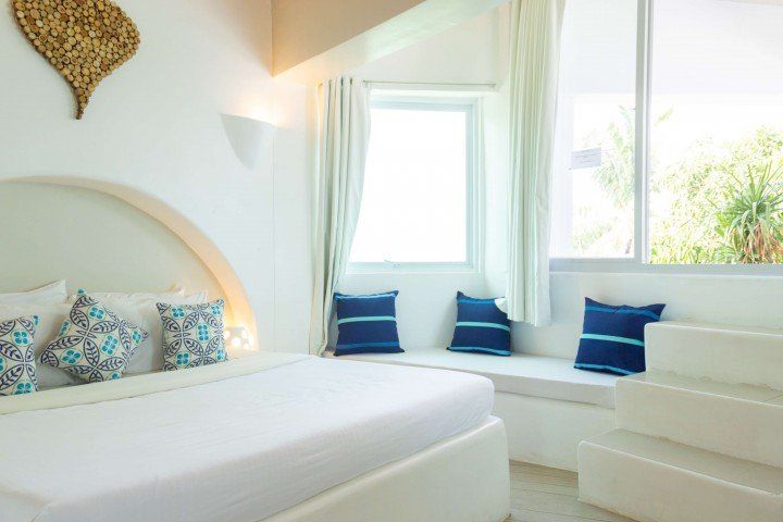 Enjoy some alone time with that special someone at our Kalachuchi Bedroom 1! This Santorini inspired villa is perfect for a romantic weekend away. Make use of the resorts public spaces, like the stunningly blue pools and restaurant overlooking the bay. Or why not enjoy some time alone on this Villa’s private balcony.