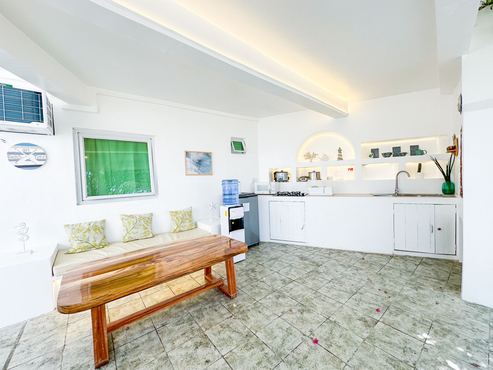 With one (1) master bedroom, equipped with one (1) queen sized bed, as well as one (1) kiddie bedroom nook with two (2) single beds and two (2) queen sized bed, this Villa comfortably sleeps eight (8).