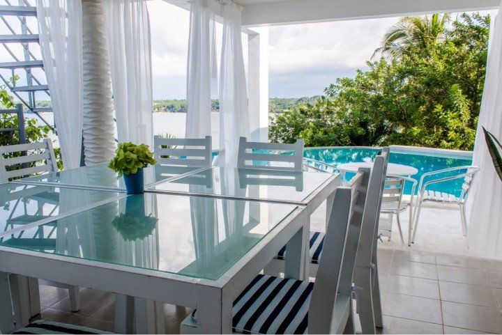 This poolside villa is perfect for couples looking for a tropical escape. Make use of the outdoor kitchen or grill area while you enjoy the stunning view on the ocean, or take a dip in the crystal clear pool. We invite you to take a trip down to the marina to enjoy a scrumptious meal at our restaurant, overlooking the bay.