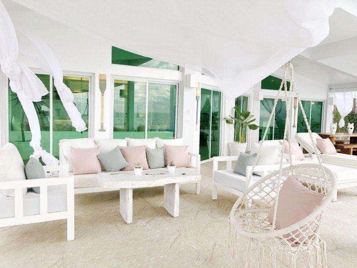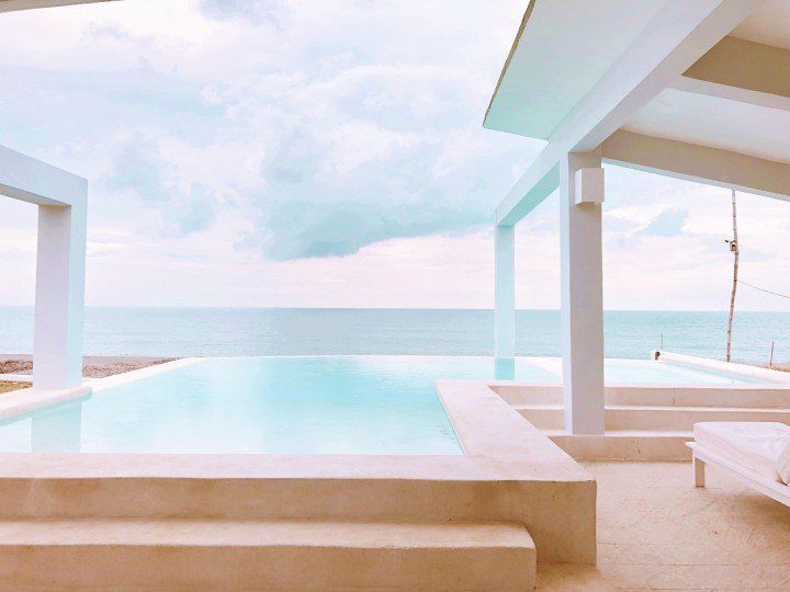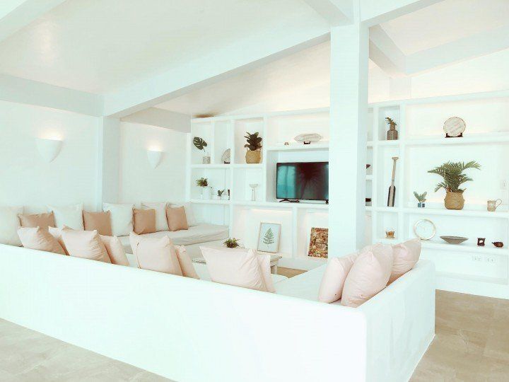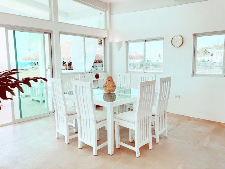 Welcome to the grandeur of our 6 Bedroom Grand Villa, a luxurious beachfront retreat designed for the ultimate escape. This expansive villa comfortably hosts up to 36 guests, boasting a private infinity pool that merges directly with the endless blue of the sea, offering you a serene, flowing landscape of water at your doorstep. The villa's lounge area, with its wide, inviting windows, frames the captivating ocean view, creating a living painting that changes with the ebb and flow of the tides. Step out onto the spacious balcony from the sun-drenched living room and you're instantly immersed in the coastal vibe, with the soothing sounds of the waves setting a tranquil rhythm for your stay.