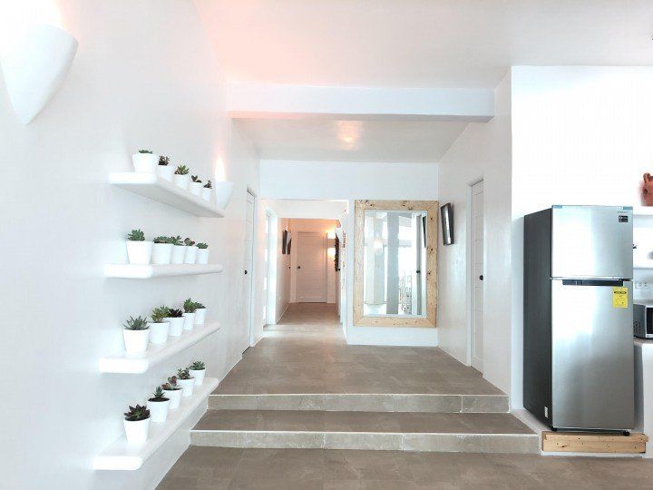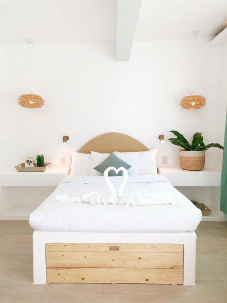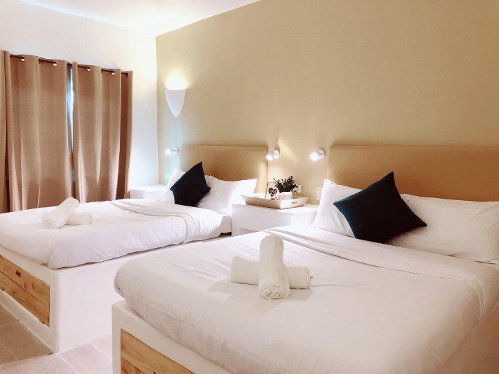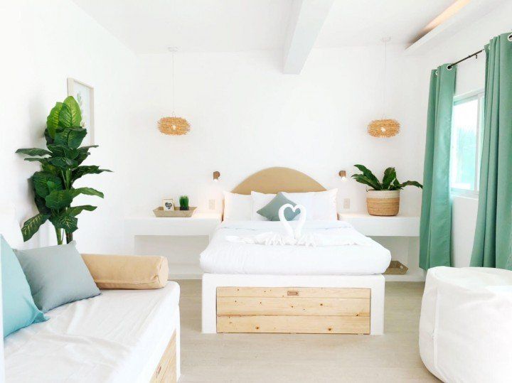 Inside, the villa offers refined comforts with a master bedroom featuring a plush queen-sized bed set in a Moroccan-inspired decor, adding a touch of exotic elegance. The second bedroom is equipped with a queen bed and additional bunks, complete with private bathrooms for each room, ensuring privacy and convenience for all guests. With access to our communal infinity pools and pristine beach, every detail from the chic, earthy living room to the fully-equipped marble kitchen is designed to make your stay an unforgettable fusion of relaxation and style.